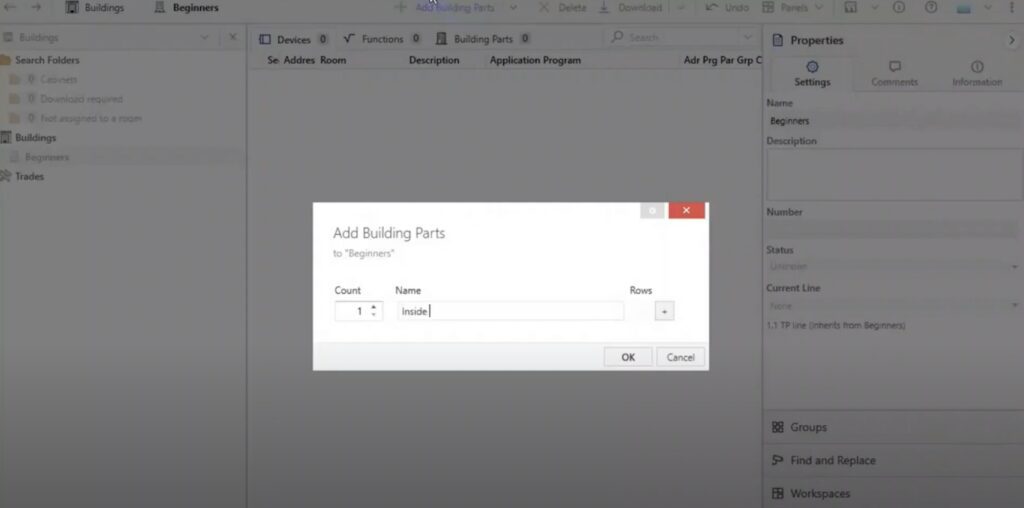 Een goed georganiseerde projectstructuur is de basis van ieder ETS6-project. Je start met het aanmaken van gebouwonderdelen, zoals een binnen- en buitenzone. Vervolgens voeg je verdiepingen toe (bijvoorbeeld kelder, begane grond, zolder) en koppel je daar kamers aan.